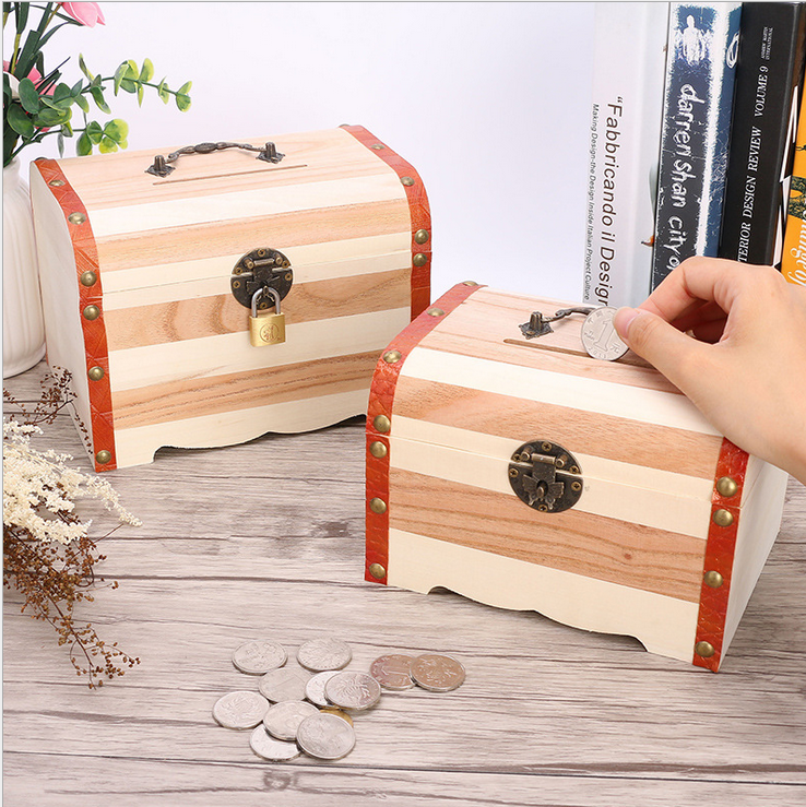 New Creative Wooden Case Storage Box Save Money Coin Saving Box W Lock Vintage Ebay
